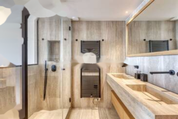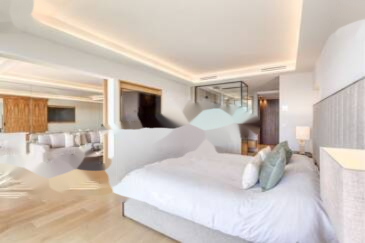 Ночная зона отличается элегантностью и безупречными отделочными работами. Включает две спальни, среди которых одна мастер-сьюит с ванной комнатой, а также вторая спальня с прилегающей душевой, обе с видом на море.