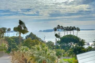 Просторная гостиная площадью около 30 м² с американской кухней, которая выходит на прекрасную террасу 12 м² с потрясающим видом на море, Леринские острова, Дворец фестивалей и Сюке. Спальня площадью 12.5 м² с видом на церковь Нотр-Дам-де-Бон-Вояж. Просторная душевая комната с туалетом и дополнительный гостевой туалет. Парковка в подземном этаже.
