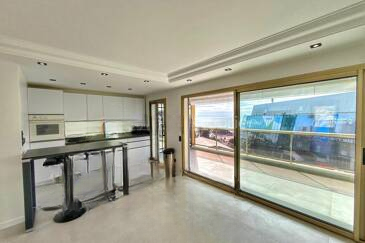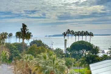 Квартира светлая и проветриваемая благодаря сквозной планировке, высококачественные материалы при ремонте обеспечивают комфорт. Жилая зона около 30 м² с открытой кухней выходит на прекрасную террасу площадью 12 м² с потрясающим видом на море, Леринские острова, Дворец фестивалей и Сюке.