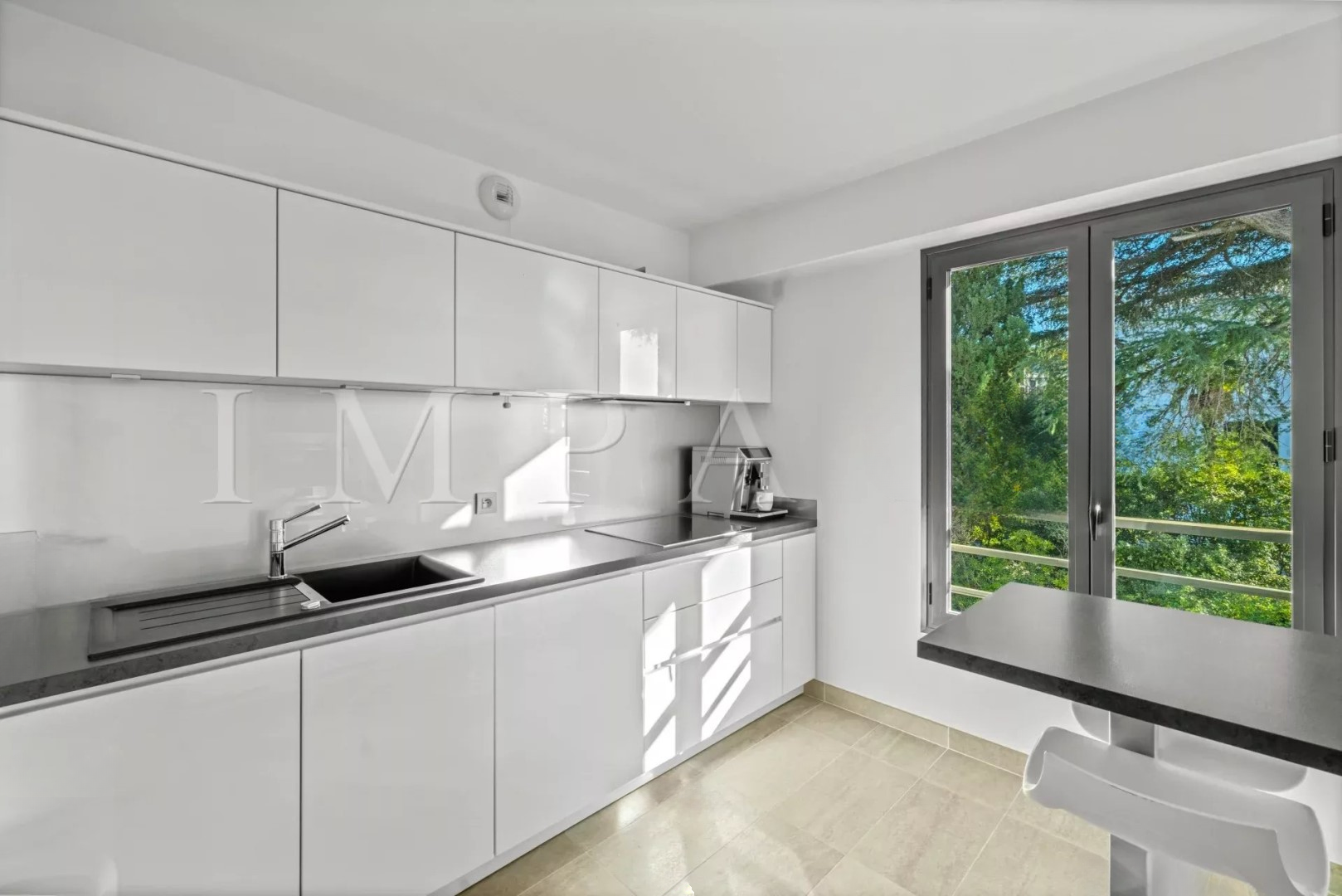 Расположенная на последнем этаже элегантной резиденции, построенной в 2015 году, с садом и бассейном, квартира предлагает комфортную площадь в 81 м². Включает светлую гостиную, полностью оборудованную кухню, две спальни, большую ванную комнату и гостевой туалет. Настоящим преимуществом этой квартиры является великолепная терраса площадью 41 м², с которой открывается великолепный вид на море и которая идеально подходит для того, чтобы в полной мере наслаждаться солнцем и прекрасными днями. Большой гараж в подвале дополняет комфорт этой квартиры с прекрасными удобствами.