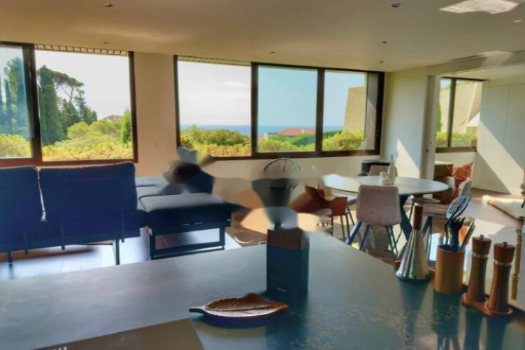 Как в частном доме, здесь не будет соседей сверху или снизу. Апартамент полностью обновлен и продается меблированным, предлагая просторную гостиную площадью более 60 м² с обильным естественным освещением и потрясающим видом на море и Острова Лерин. Кухня полностью оборудована и открыта в главную зону.