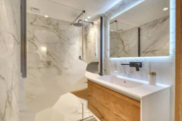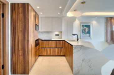 Гостиная открывается в светлую комнату с открытой кухней, которая идеально подходит для приёма гостей в элегантной и современной атмосфере. Три спальни с ванными комнатами или душевыми обеспечивают комфорт и уединение.