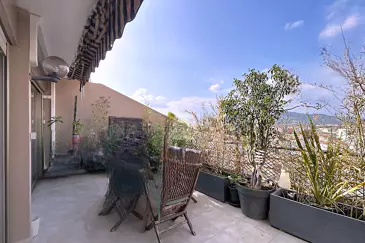 Апартаменты состоят из просторной и светлой гостиной около 40 м² с выходом на балкон с видом на море, а также полностью оборудованной кухни американского типа, ведущей на террасу площадью 20 м².