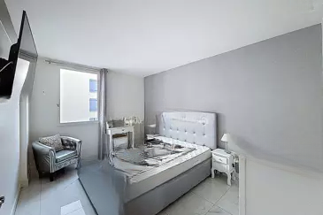 Просторная четырехкомнатная квартира площадью 84 кв. м расположена в самом центре города, в нескольких шагах от пляжей. ️ Это жилье предоставляет светлую и гармоничную обстановку с удобной планировкой, располагаясь на высоком этаже. В квартире имеется обширная гостиная площадью 36 кв. м, выходящая на уютную лоджию площадью 6 кв. м.