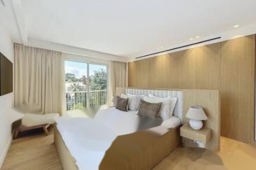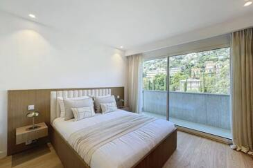 Расположена в резиденции с консьержем и великолепным парком с японским садом. Квартира площадью 155 м² полностью отремонтирована, сдана новой, меблированной и декорированной. Просторный вход ведет в обширную гостиную с открытой кухней, обустроенной и оборудованной, все выходит на большую террасу с экзотическим деревом и панорамным видом на море.