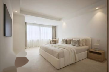 Широкие застекленные двери раскрывают великолепный вид на море, пляжи и Круазет, позволяя выйти на террасу площадью 15 кв. м. Ночная зона состоит из главной спальни с собственной ванной комнатой, а также второй спальни с душевой.