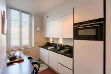 Квартира включает полностью оборудованную современную кухню, две спальни, ванную комнату и отдельный туалет. Успешное сочетание старинного обаяния и современного комфорта, расположенная в самом центре города в спокойной атмосфере.