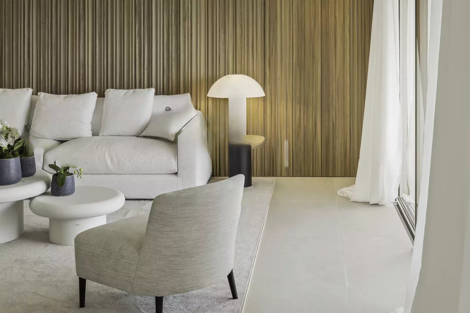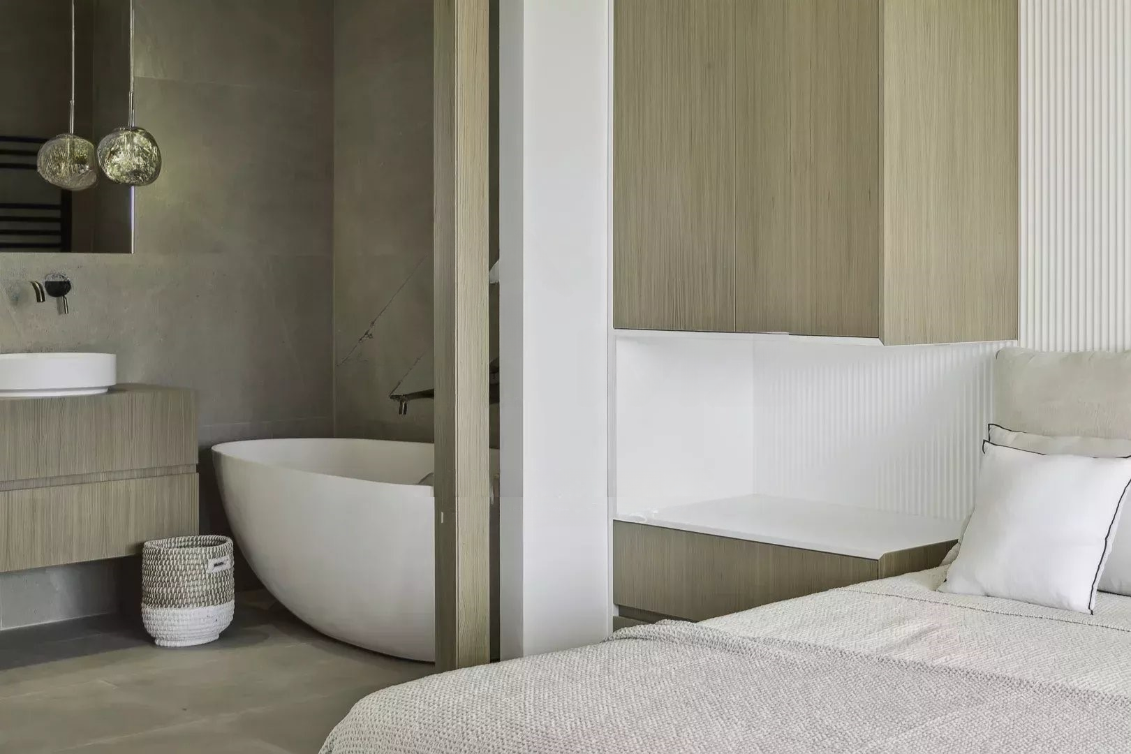 Спальная зона состоит из трёх спален с ванными комнатами, включая роскошную мастер-спальню, обеспечивая уединение и комфорт. Каждая спальня тщательно спроектирована для максимизации естественного освещения и комфорта.
