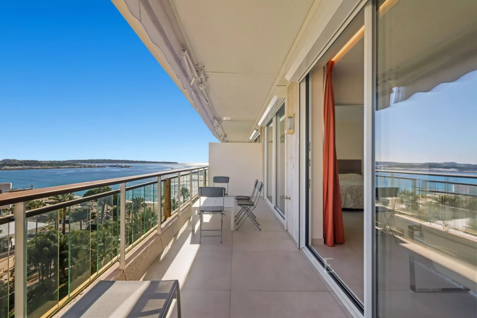 Расположенная на верхнем этаже, квартира предлагает захватывающий вид на море и сады Гранд-отеля с великолепной террасы. В ней есть прихожая, просторная гостиная с выходом на террасу с панорамным видом, полностью оборудованная кухня, а также две спальни, каждая с собственной ванной комнатой, отдельный туалет и множество мест для хранения.