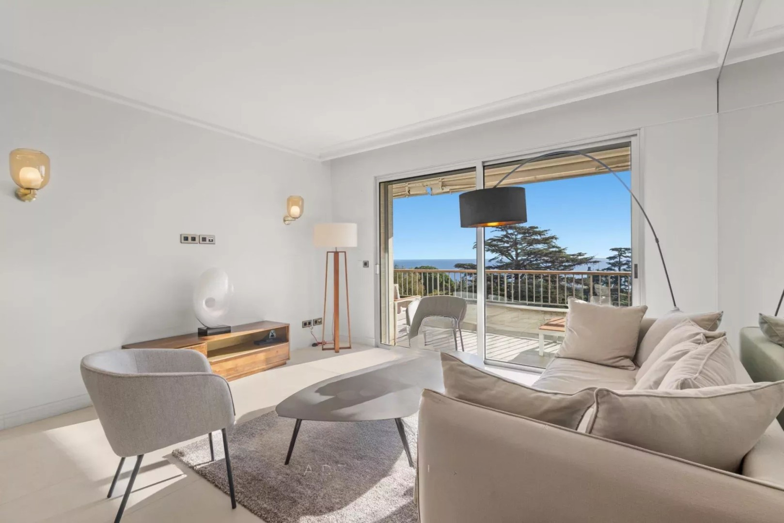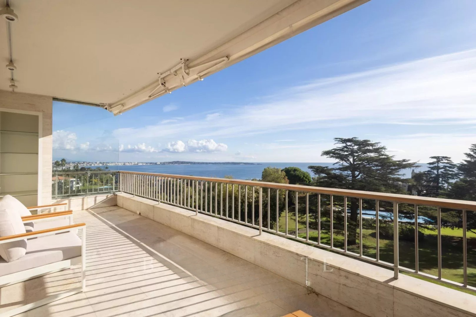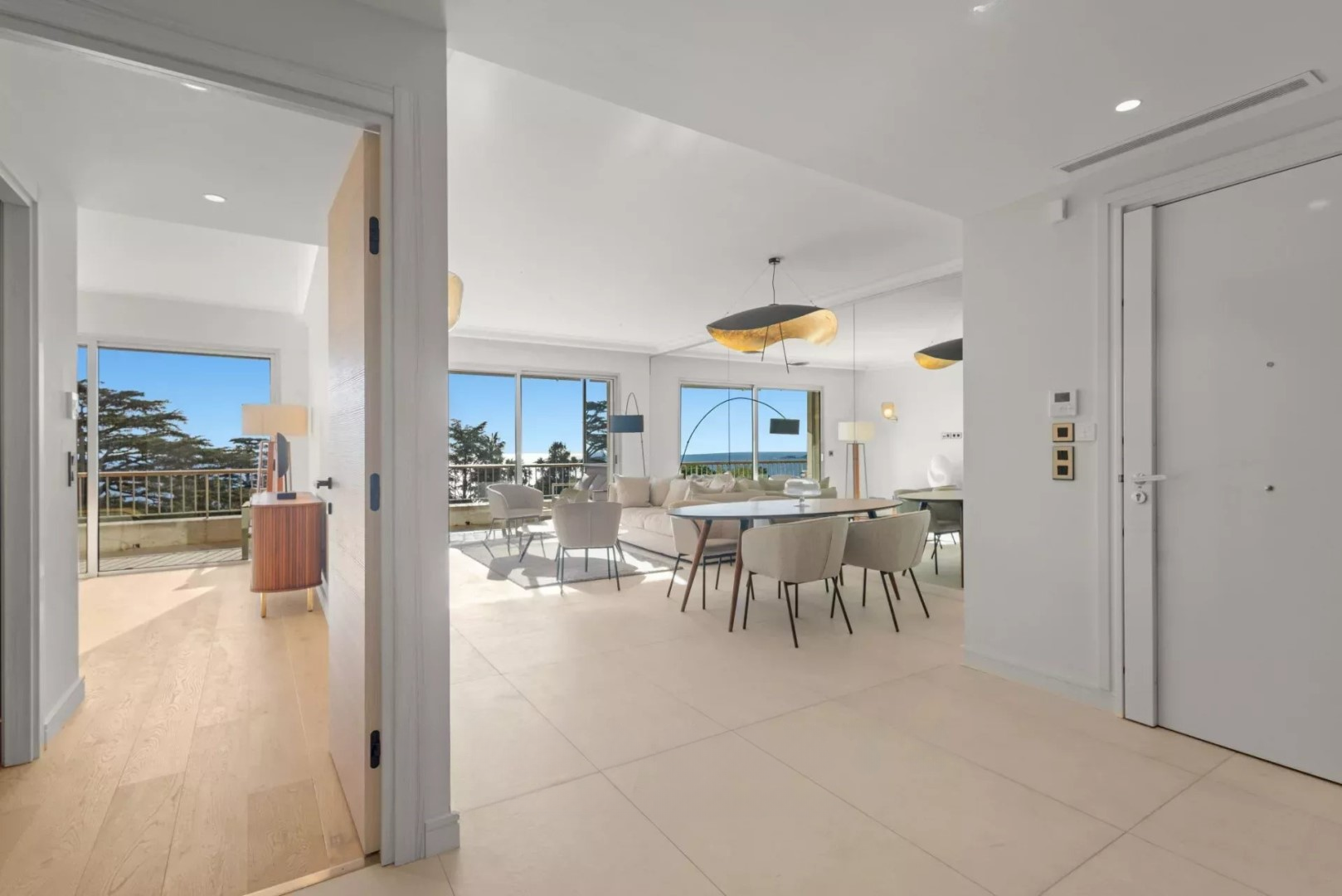 Квартира площадью 104 м² оборудована светлой гостиной, выходящей на террасу площадью 20 м² с панорамным видом на парк и море. Полуизолированная кухня современна и функциональна. Главная спальня оборудована собственной ванной комнатой и гардеробной, а две дополнительные спальни делят между собой ванную.