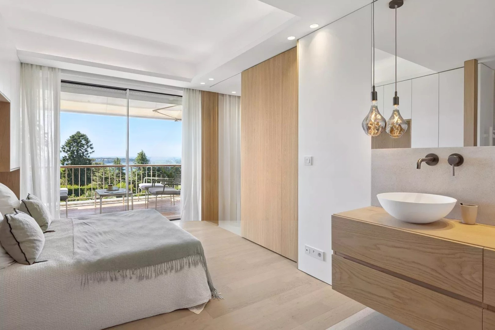Современная, полностью оборудованная кухня создает уютное пространство для приготовления любимых блюд. Главная спальня просторна и элегантна, с видом на парк и прямым выходом на террасу, а две другие спальни-люксы обеспечивают комфорт и уединение для гостей.