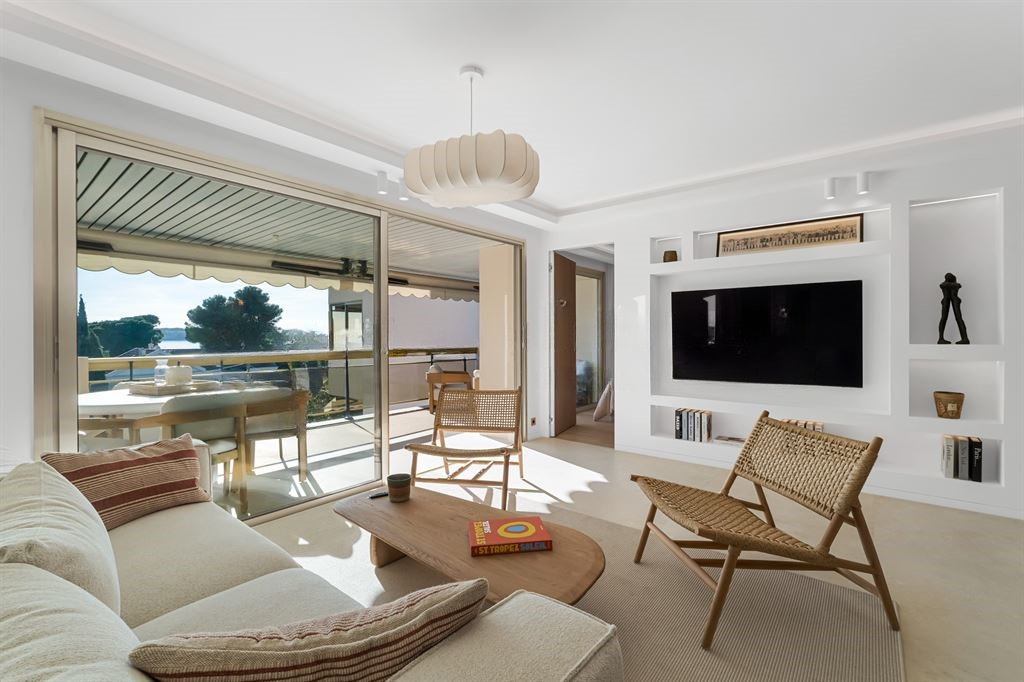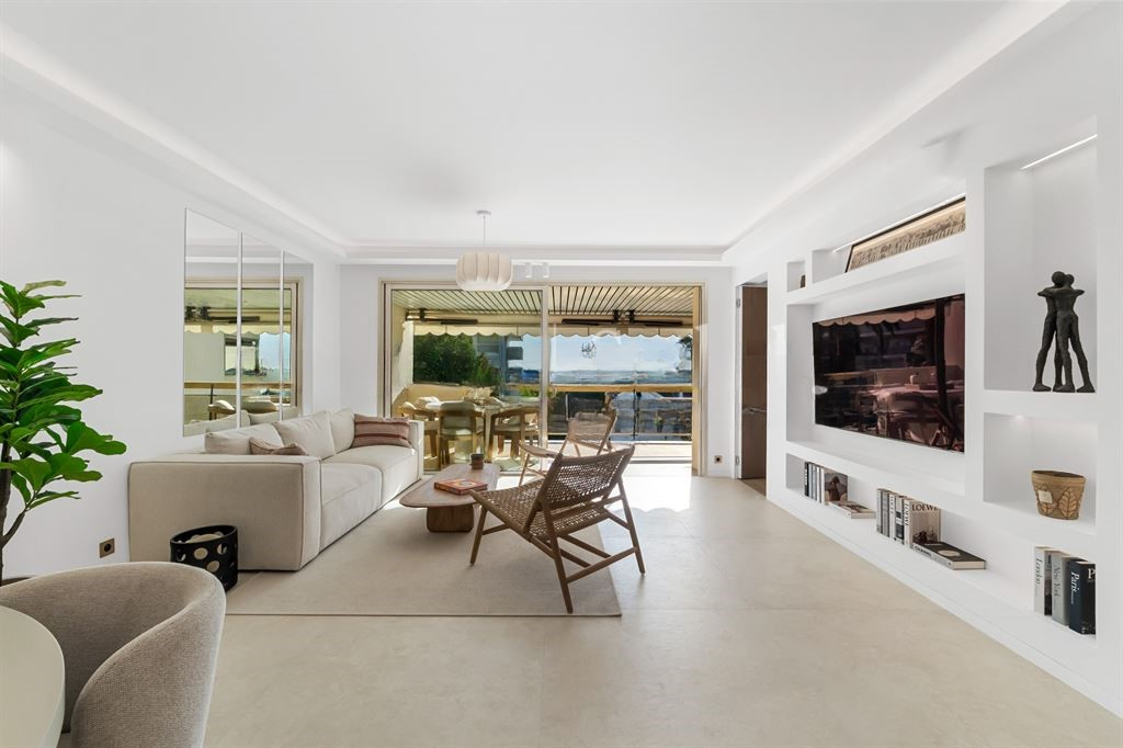 Оснащение модернизировано, чтобы соответствовать современным стандартам комфорта. Светлая и просторная гостиная открывается на террасу площадью 19 м², выходящую на южную сторону с видом на море. Кухня открытого плана выполнена из натурального камня.