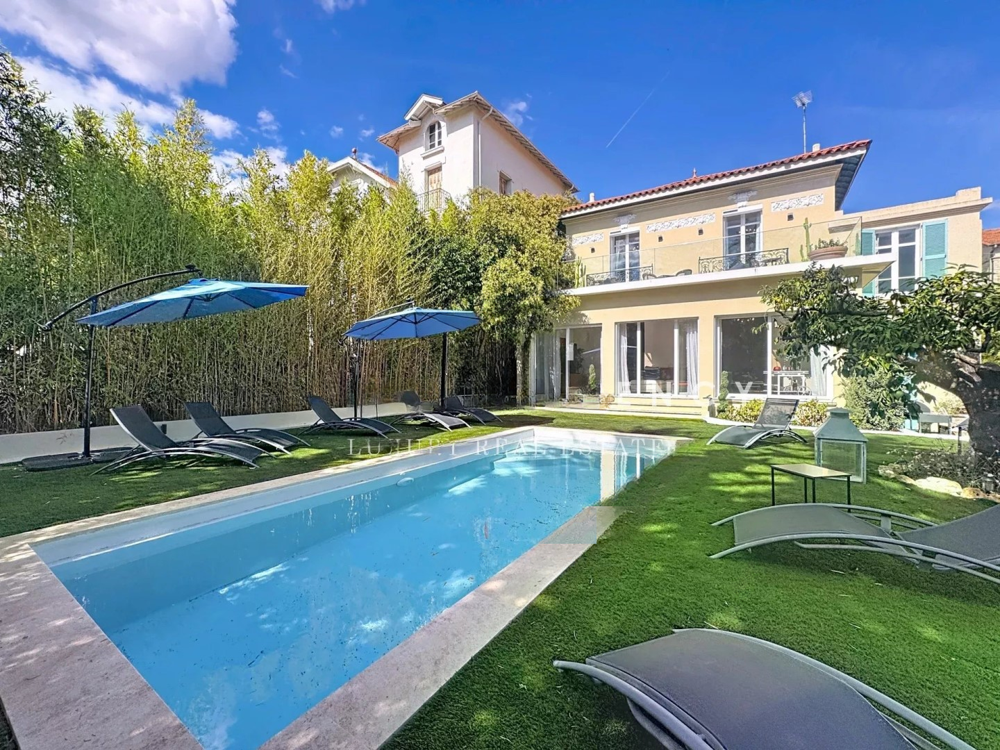 Всего в 5 минутах от набережной Круазет (20 минут пешком), в тихом и жилом районе, находится элегантный дом буржуазного стиля 30-х годов с жилой площадью 302м² (или 276м² по закону Каррез), полностью отремонтированный с использованием благородных материалов, сочетая классический шарм и современные штрихи.