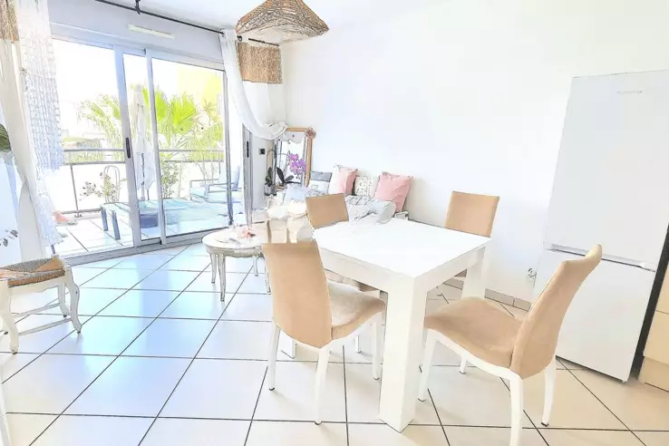 Канны, центр города, в двух шагах от улицы Антиб (5 минут пешком), в резиденции очень высокого уровня, с видеонаблюдением. Продается двухкомнатная квартира с кондиционером, площадью 43 м², на высоком этаже с лифтом. Квартира включает гостиную с оборудованной кухней, выходящей на террасу, ориентированную на восток, красивую спальню, ванную комнату и туалет. Ремонт не требуется. Возможность аренды или приобретения гаража за дополнительную плату.
