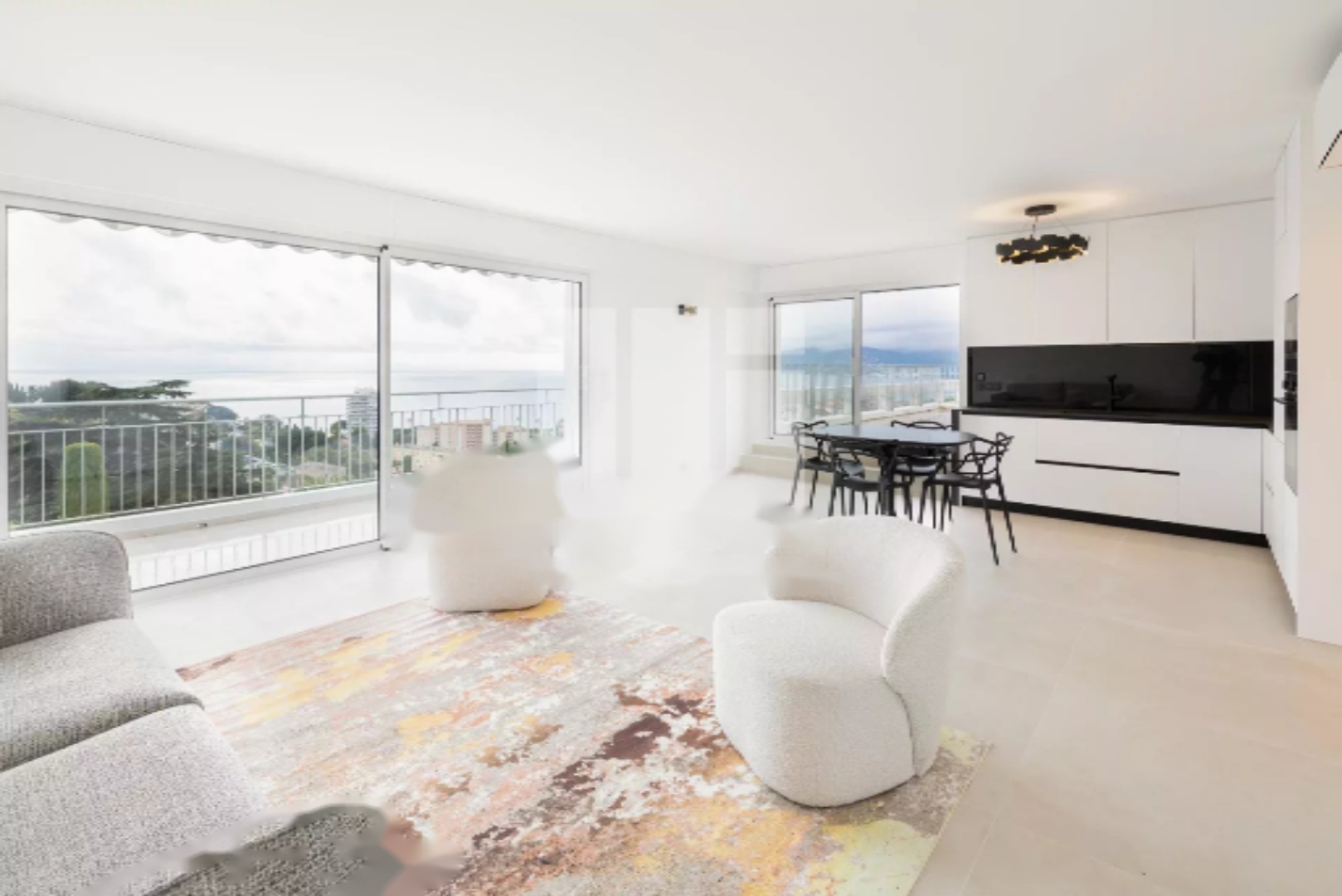 Sea view, Quiet, 3 rooms, South and west exposure, 4-story building, Top floor, On the 4th floor, Cellar, Unfurnished, Living room 30 sq. m, Reversible air conditioning, 2 bedrooms, 2 bathrooms with shower.