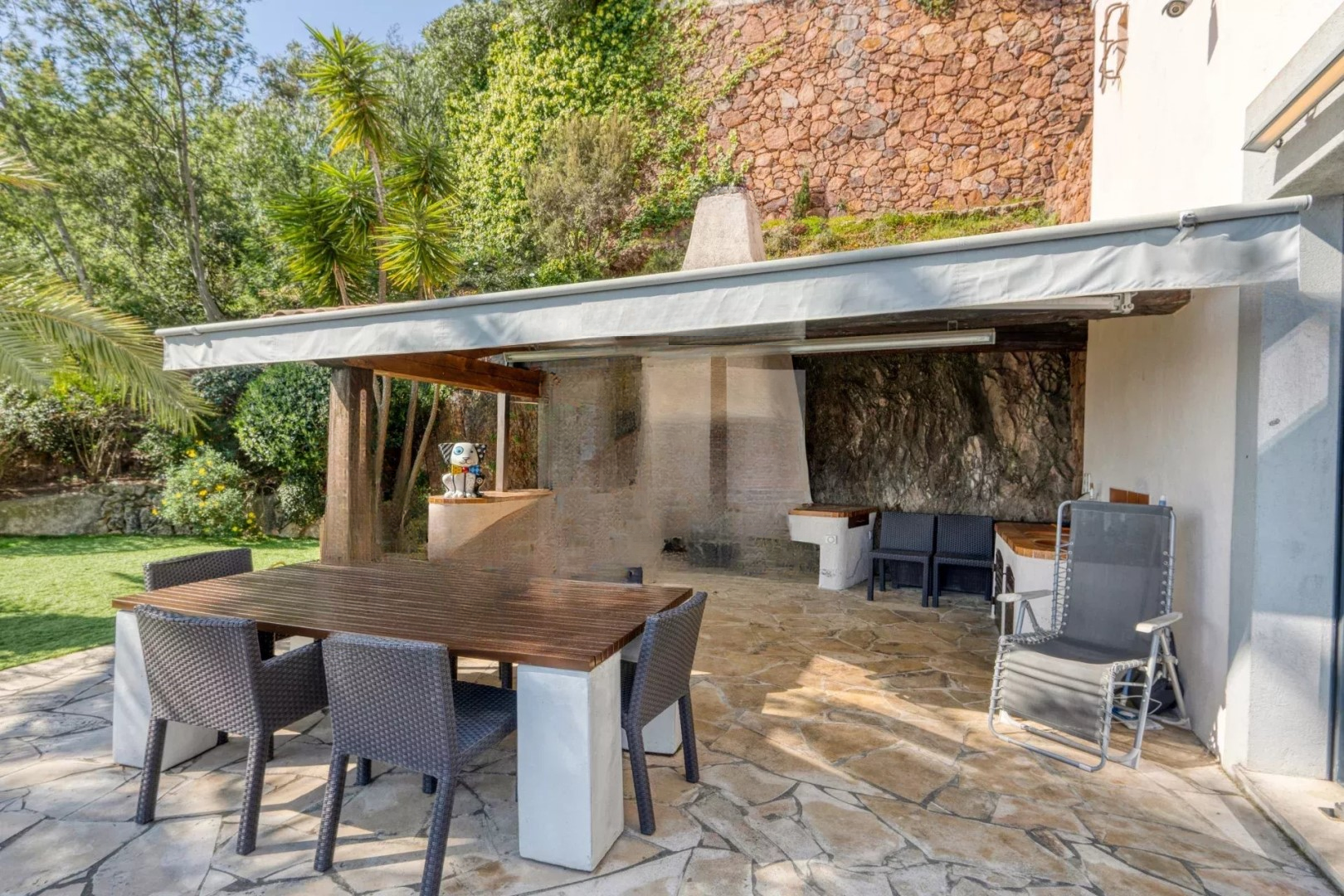 Вилла построена на обширном благоустроенном участке площадью 3500 м², здесь есть множество зон отдыха, подогреваемый бассейн, летняя кухня и пульхаус, а также многочисленные парковочные места для ваших автомобилей.