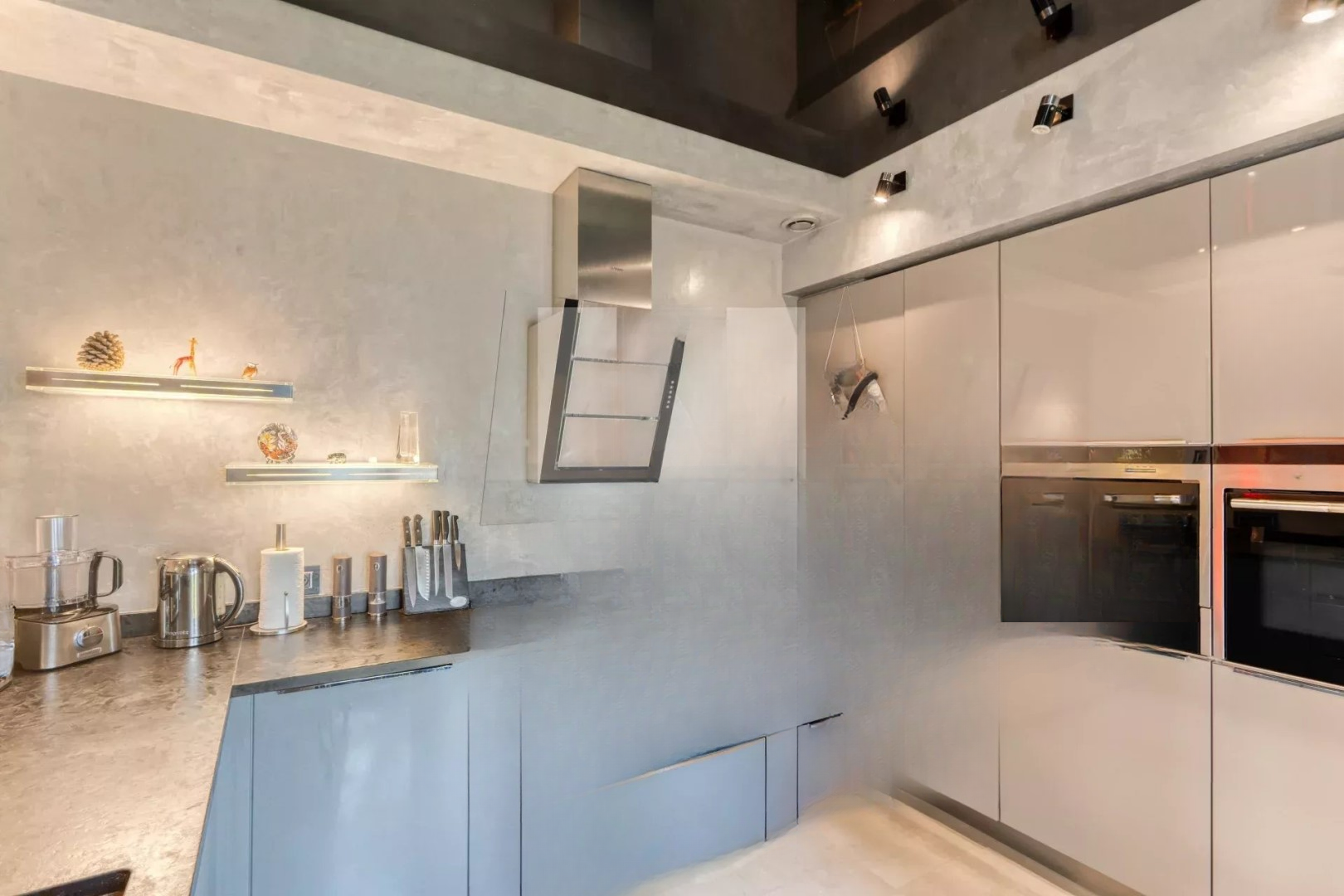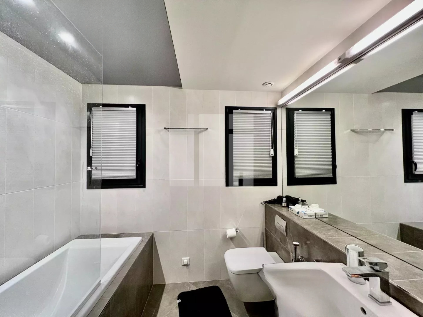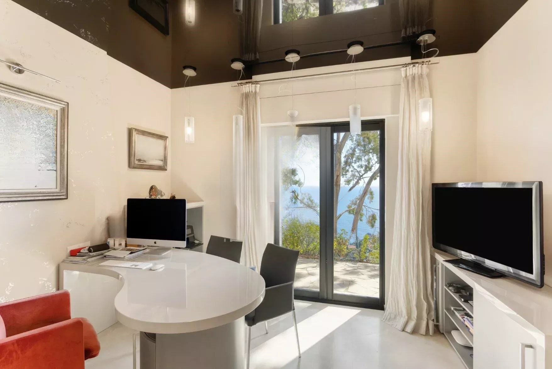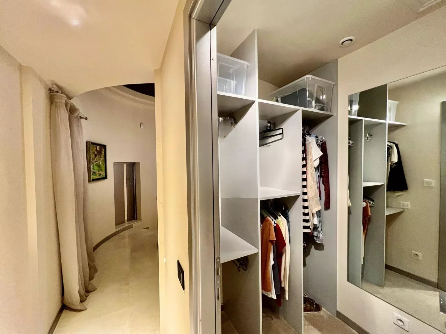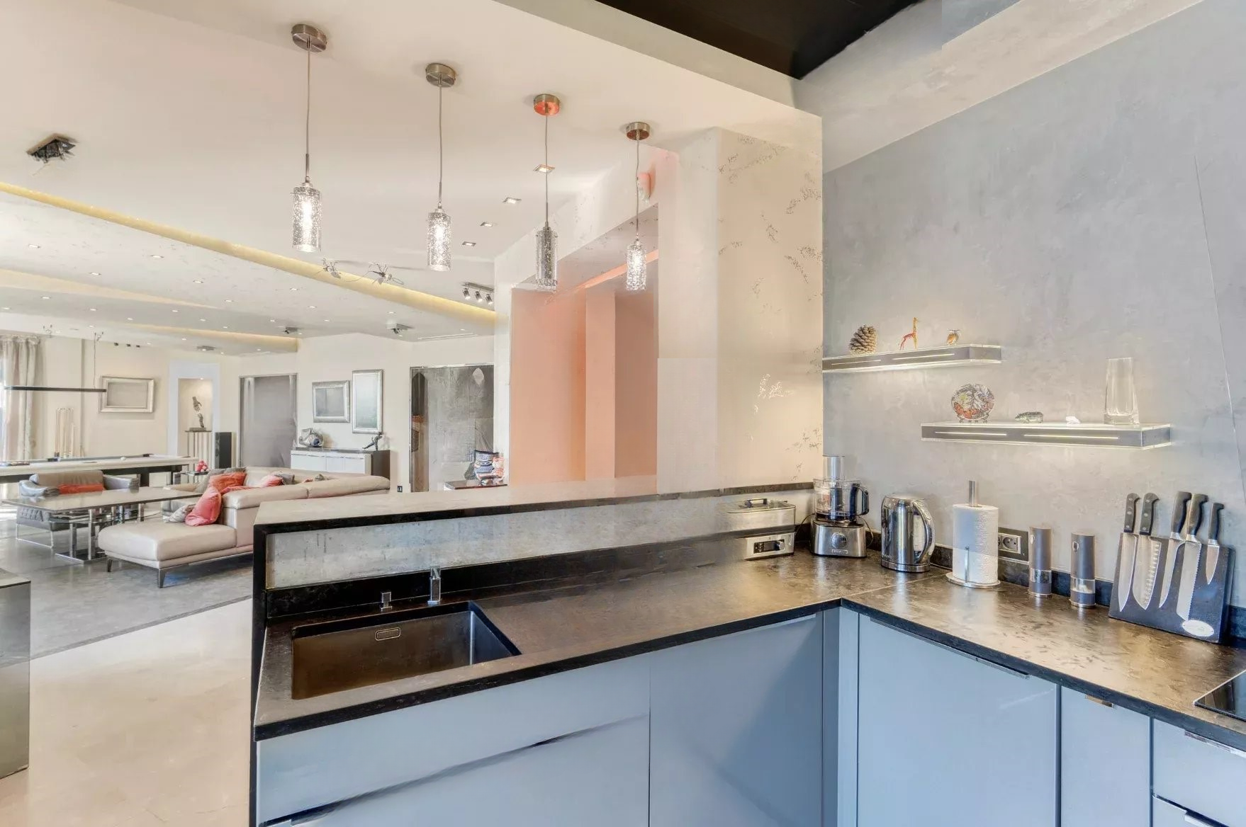 ✨ На первом этаже расположена красивая спальня с ванными комнатами, кабинетом и гардеробом с великолепным видом на море и прямым выходом на террасу и к бассейну. На верхнем этаже три спальни также с красивыми видами на море. На нижнем уровне — отдельное студио, винный погреб и тренажерный зал.