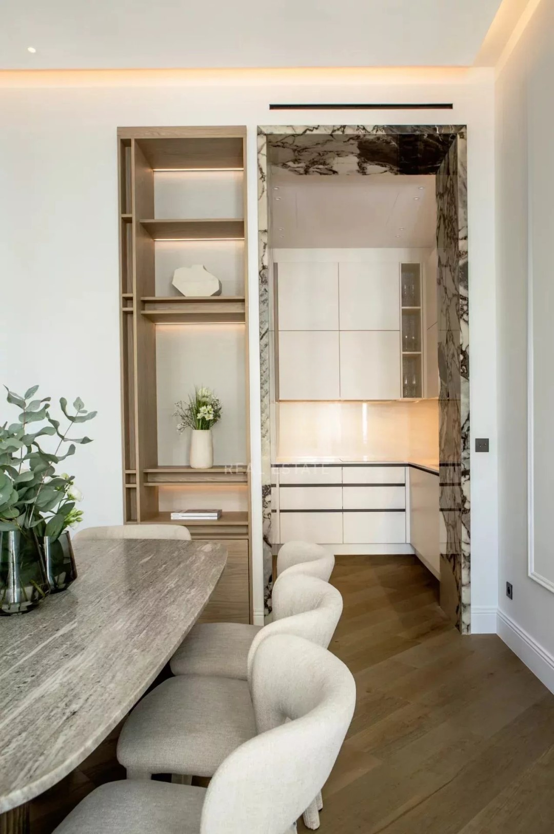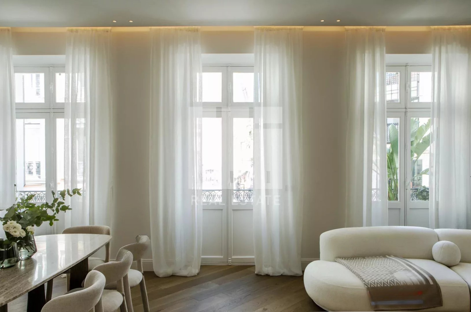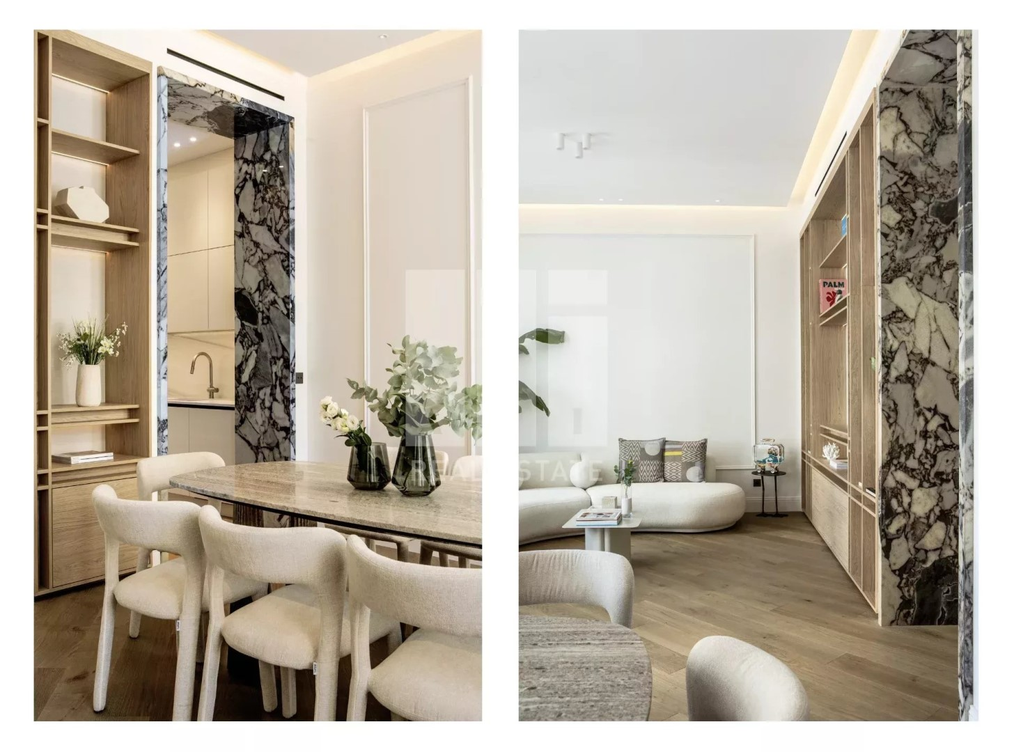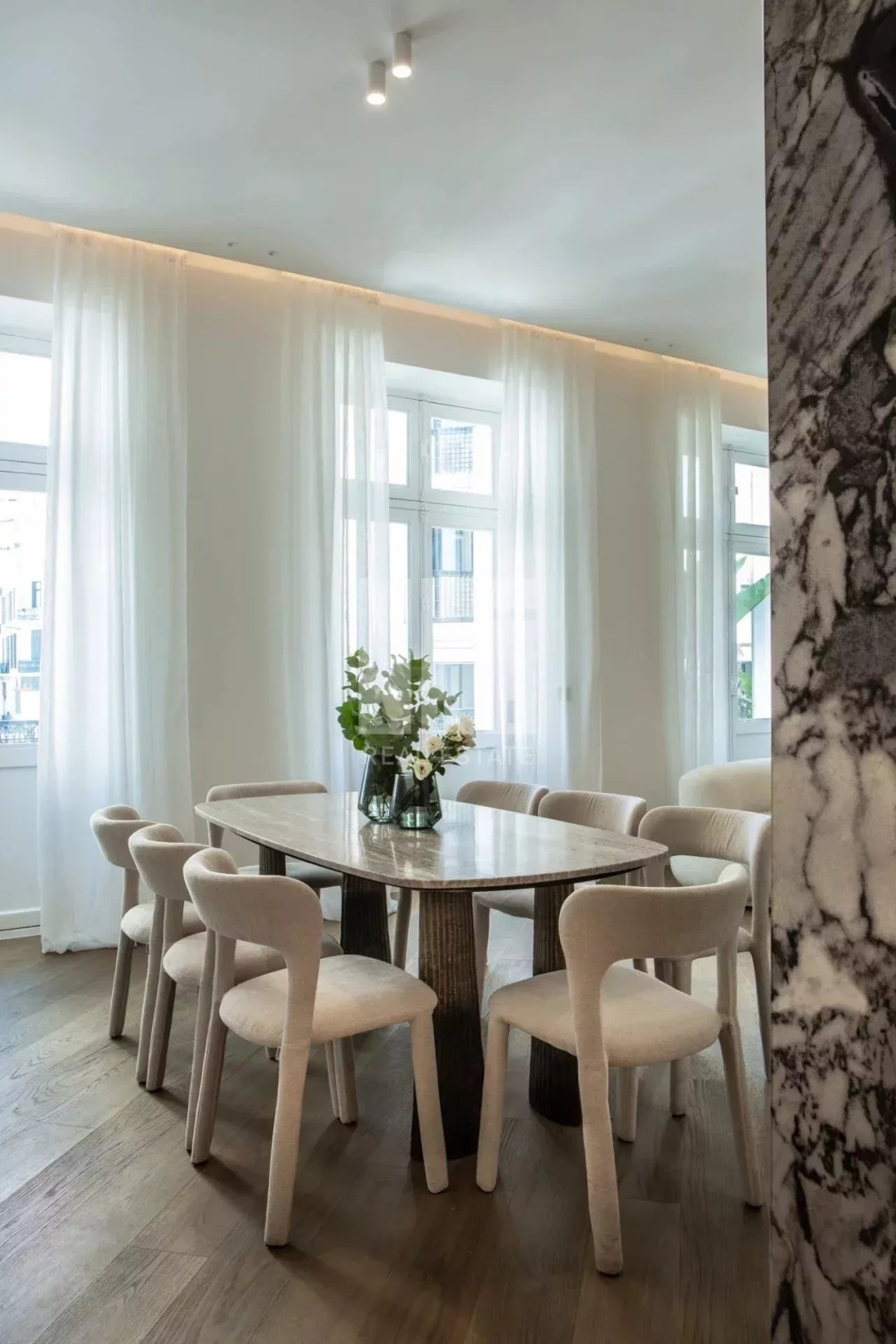 Квартира включает в себя просторный холл, светлую гостиную/столовую, полностью оборудованную кухню, четыре просторные спальни с ванными комнатами, душевыми итальянского типа и гардеробными, обустроенную прачечную, гостевой туалет и террасу.