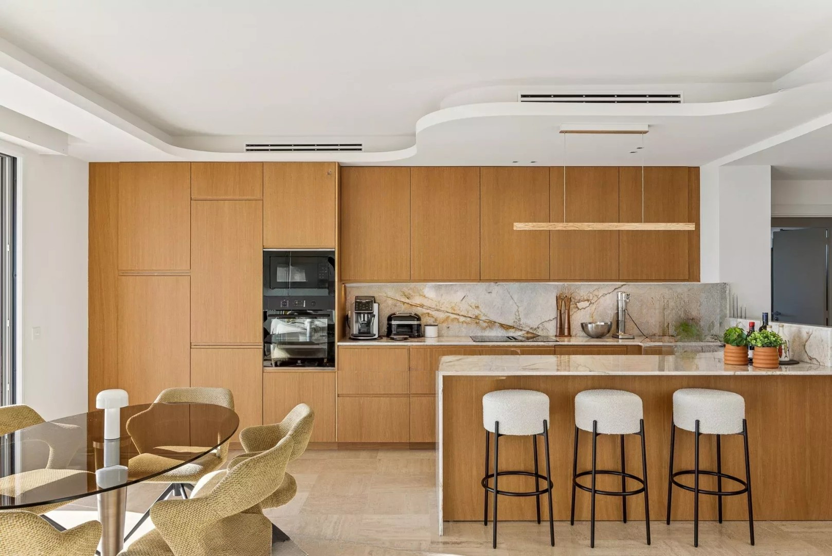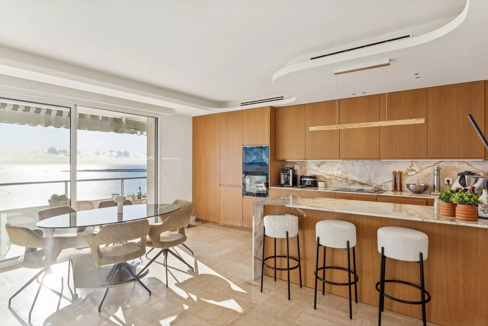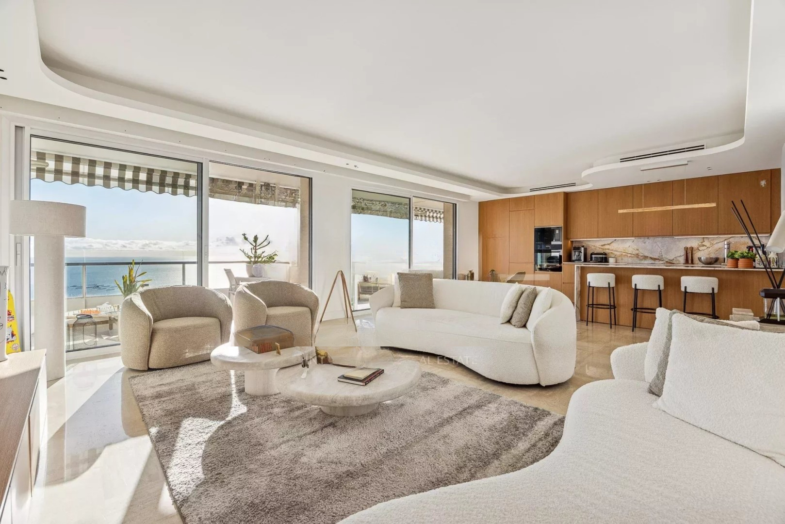 Апартамент состоит из просторной гостиной с открытой кухней, выходящей на террасу площадью 45 м², идеально подходящую для наслаждения солнечными днями. Главная спальня включает в себя душевую и гардеробную с прямым выходом на террасу, в то время как две другие спальни с ванными комнатами обеспечивают уединенность и комфорт.