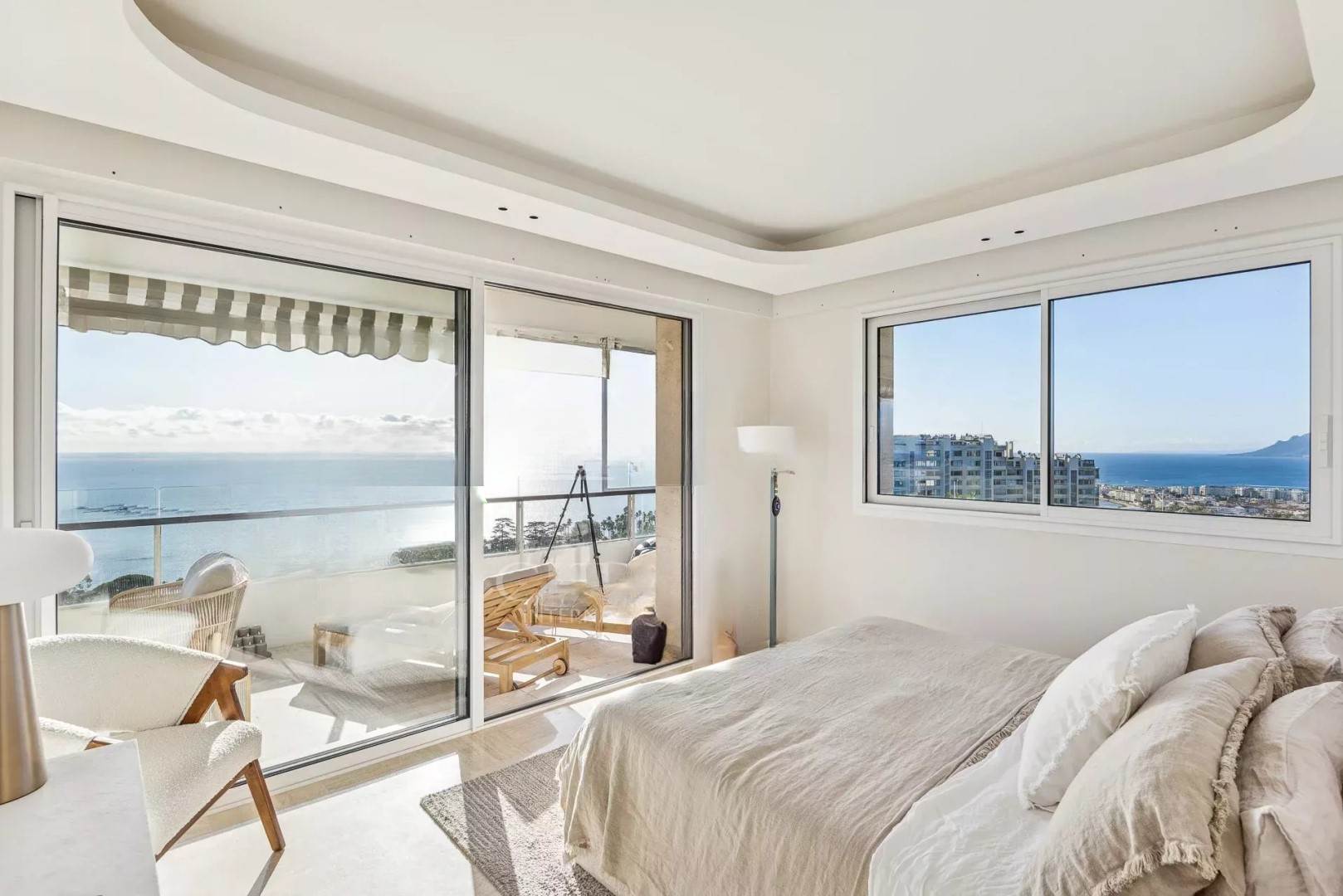 Откройте для себя этот роскошный апартамент площадью 135 м², расположенный в престижной резиденции с круглосуточной охраной и садовником, в престижном районе Калифорния в Канн-Валльорисе. Расположенный на верхнем этаже, этот уникальный объект предлагает панорамный вид на море и южную ориентацию, что гарантирует свет и комфорт.