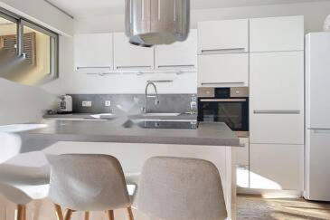 Эксклюзивное предложение: в престижной резиденции современная, светлая и проходная четырехкомнатная квартира площадью 82 кв. м с тройной экспозицией и кондиционированием. Она включает в себя холл, открытую кухню, выходящую в гостиную, ведущую на красивую террасу площадью 17 кв. м и с южной ориентацией. Родительская спальня с душевой комнатой, гардеробная, терраса площадью 6,50 кв. м, две другие спальни с встроенными шкафами, ванная комната, отдельный туалет, прачечная с встроенными шкафами.