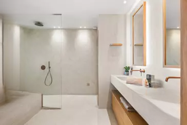 На уровне сада расположена вторая ТВ-гостиная, создающая более интимную атмосферу, а также фитнес-зона и три элегантные спальни со всеми удобствами, каждая из которых имеет собственную ванную комнату.