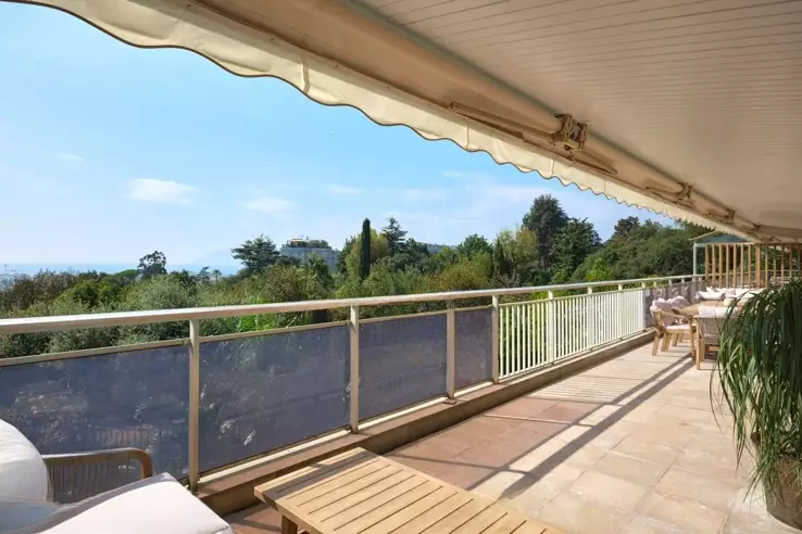 Канны, район Калифорния – панорамный вид на море, 7 комнат, 300 м². ️ Расположенная в центре престижного района Калифорния в Каннах, эта исключительная собственность находится в знаменитой резиденции Roi Albert, в окружении ландшафтного парка площадью 2 гектара. Вилла-квартира площадью 300 м², полностью пересмотренная известным архитектором, сочетает в себе современную элегантность и абсолютный комфорт в защищённой и утончённой обстановке, предлагая захватывающий вид на острова Лерин и мыс Palm Beach.