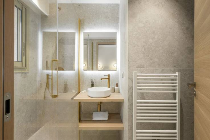 Состоит из красивой, наполненной светом гостиной, оборудованной открытой кухни и четырёх спален с ванными комнатами, каждая с собственным душем.