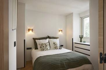 Спальная зона включает две смежные спальни, каждая с встроенными шкафами и собственной ванной комнатой, предлагающей оптимальный комфорт.