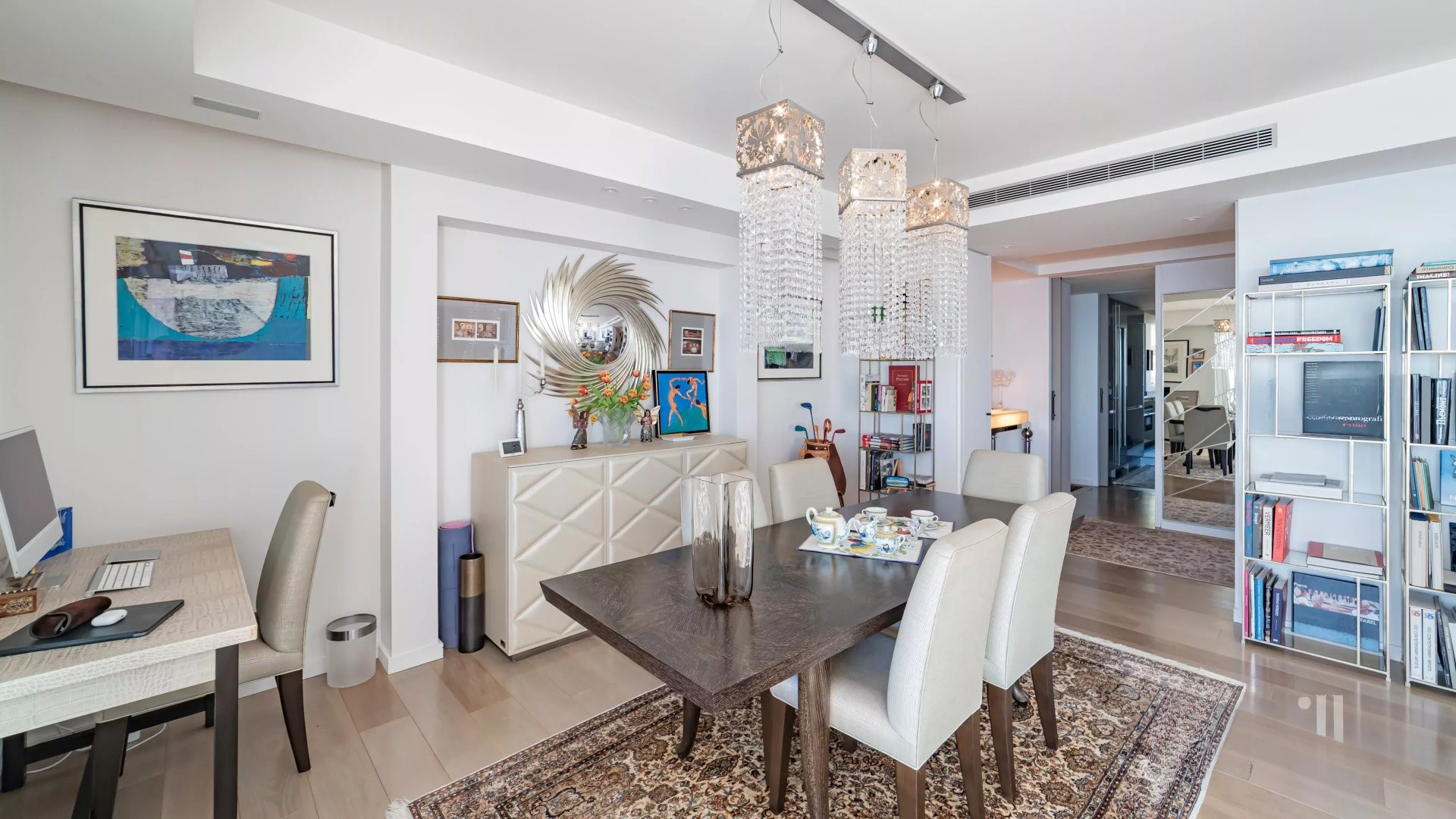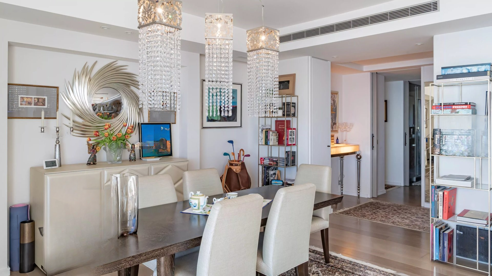 В привилегированном окружении, в высококлассной охраняемой резиденции с ландшафтным парком, бассейном, тренажерным залом и консьержем, представляем этот уникальный угловой апартамент в идеальном состоянии, общей площадью около 140 м². ☀️