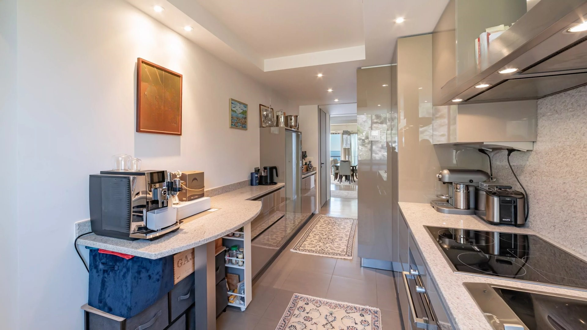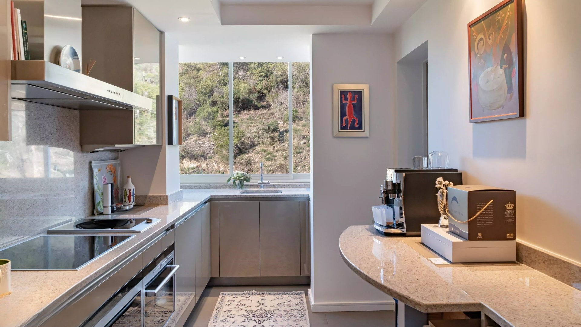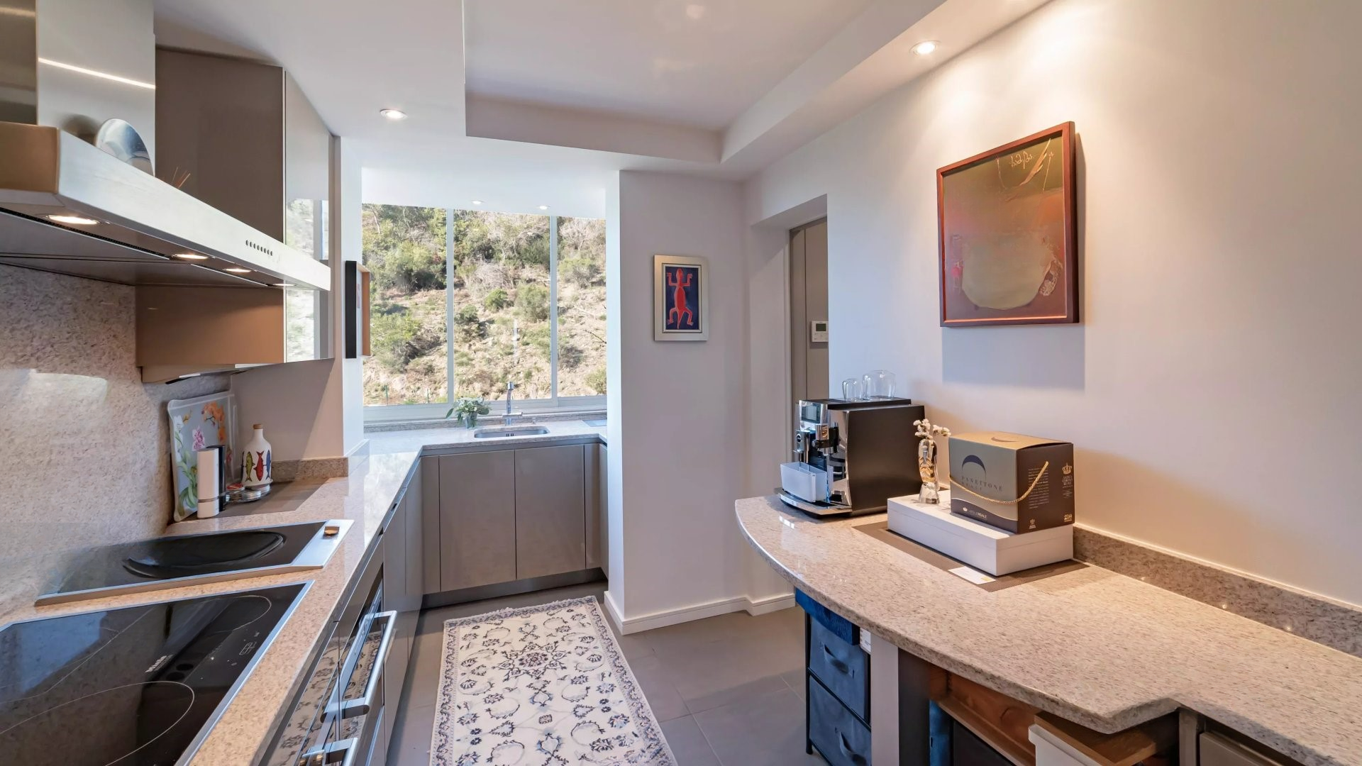 Без лишних глаз, наслаждайтесь каждый день исключительным видом на море в спокойной и зеленой обстановке. Апартамент имеет большой закрытый гараж и подсобное помещение.