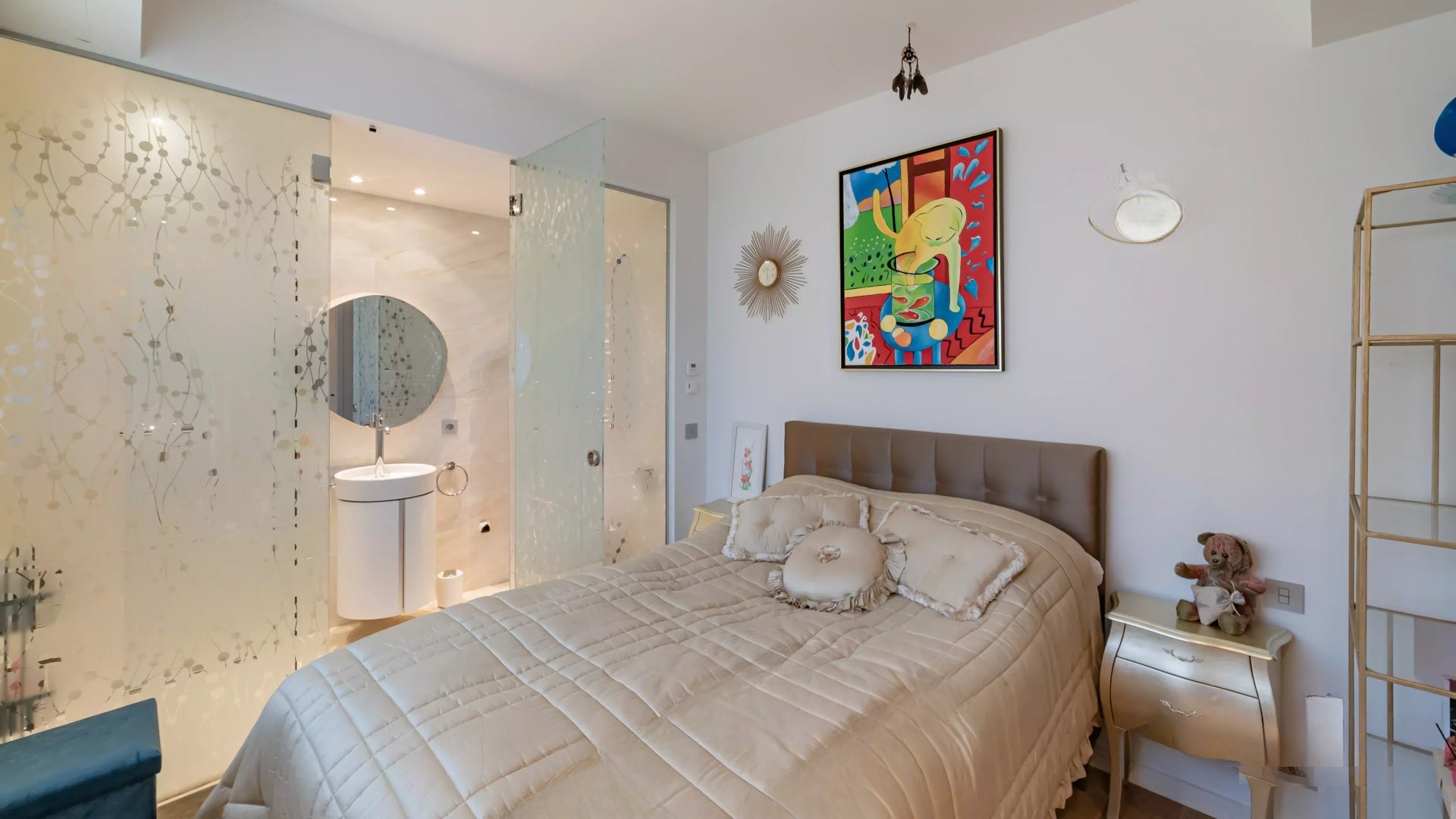 С южной и юго-восточной экспозицией, этот апартамент включает родительскую спальню с собственной ванной комнатой, а также две другие спальни с ванными комнатами, сочетая комфорт и элегантность.