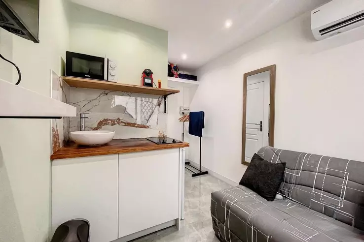 Ищете уютное жилье в Каннах или надежное вложение в самом центре города? Представляем микро-апартамент площадью 9,22 м², расположенный всего в нескольких шагах от Круазетт и пляжей.