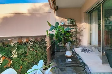 Находится в охраняемой резиденции с бассейном, включает в себя прихожую с шкафом, светлую гостиную, отдельную кухню, просторную спальню с местами для хранения, ванную и отдельный туалет. Гостиная, кухня и спальня выходят на глубокую террасу, ориентированную на запад, без соседей напротив, с открытым видом на зелень, являясь естественным продолжением жилого пространства. Прекрасно ухоженная резиденция, низкие эксплуатационные расходы, запланированных крупных работ по совместной собственности нет, прямой доступ к лесу. Подвал и частная парковка дополняют это предложение.