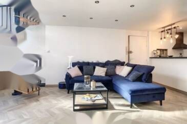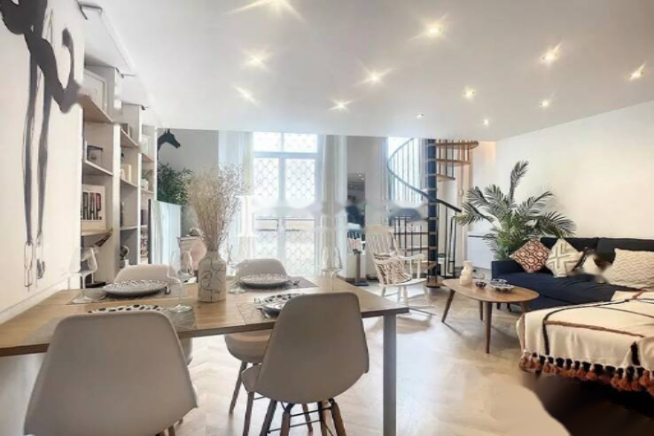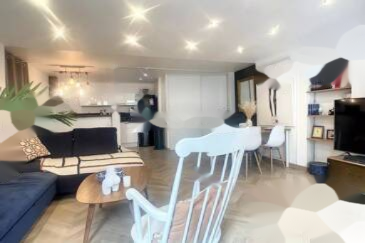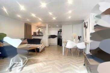 В Каннах, районе Монфлёри, в нескольких минутах ходьбы от улицы д'Антиб и центра города, находится этот дуплекс на первом этаже дома хорошего класса.