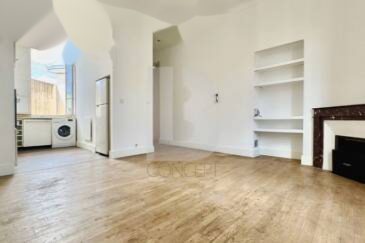 Он расположен на третьем и последнем этаже красивого буржуазного здания, обладающего всеми архитектурными чертами конца XIX века и восхищающего своим простором благодаря высоте потолков 3,50 метра. Этот сквозной апартамент включает прихожую и жилое пространство около 26 м² (гостиная с прилегающей открытой кухней) и обеспечивает двустороннее освещение.