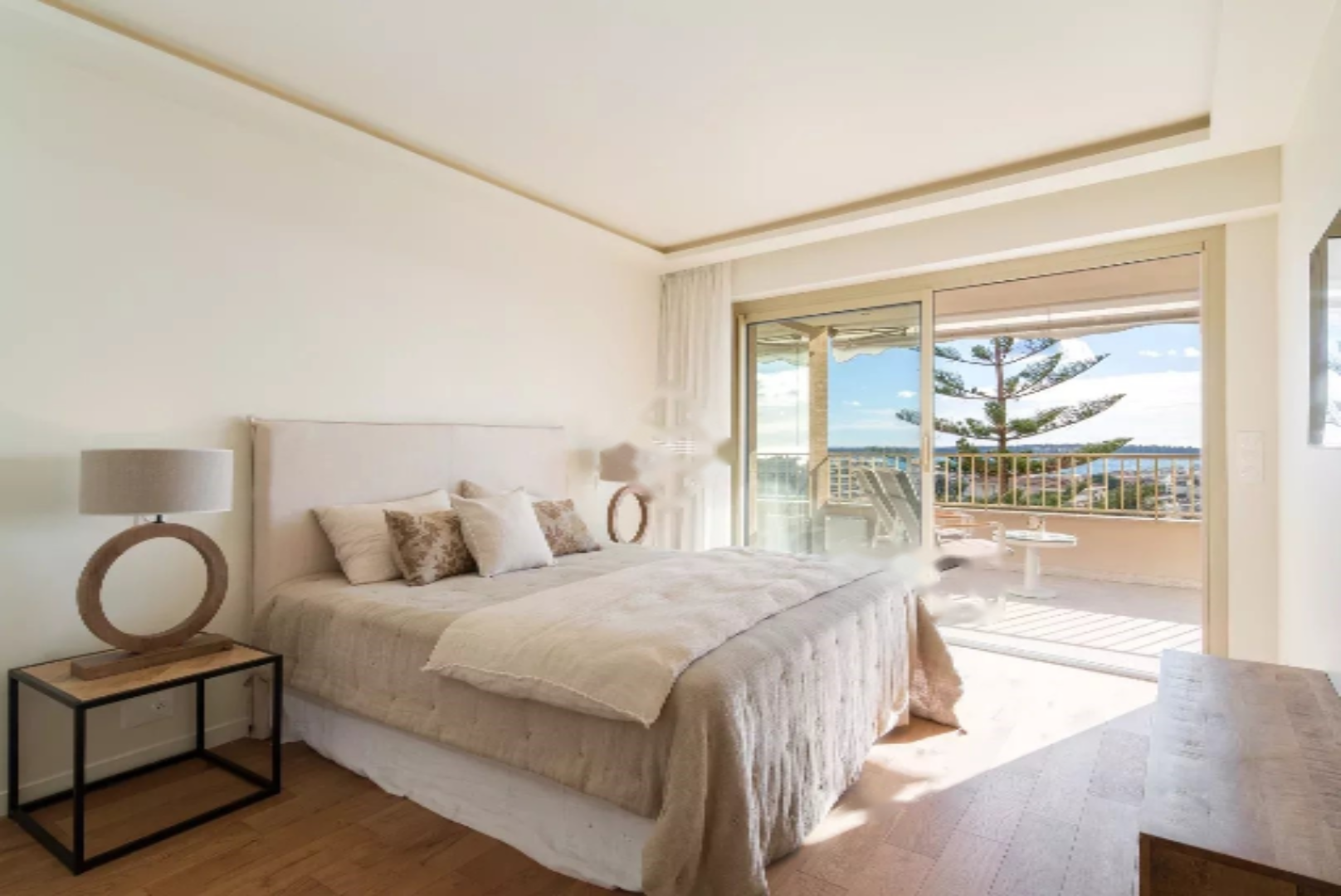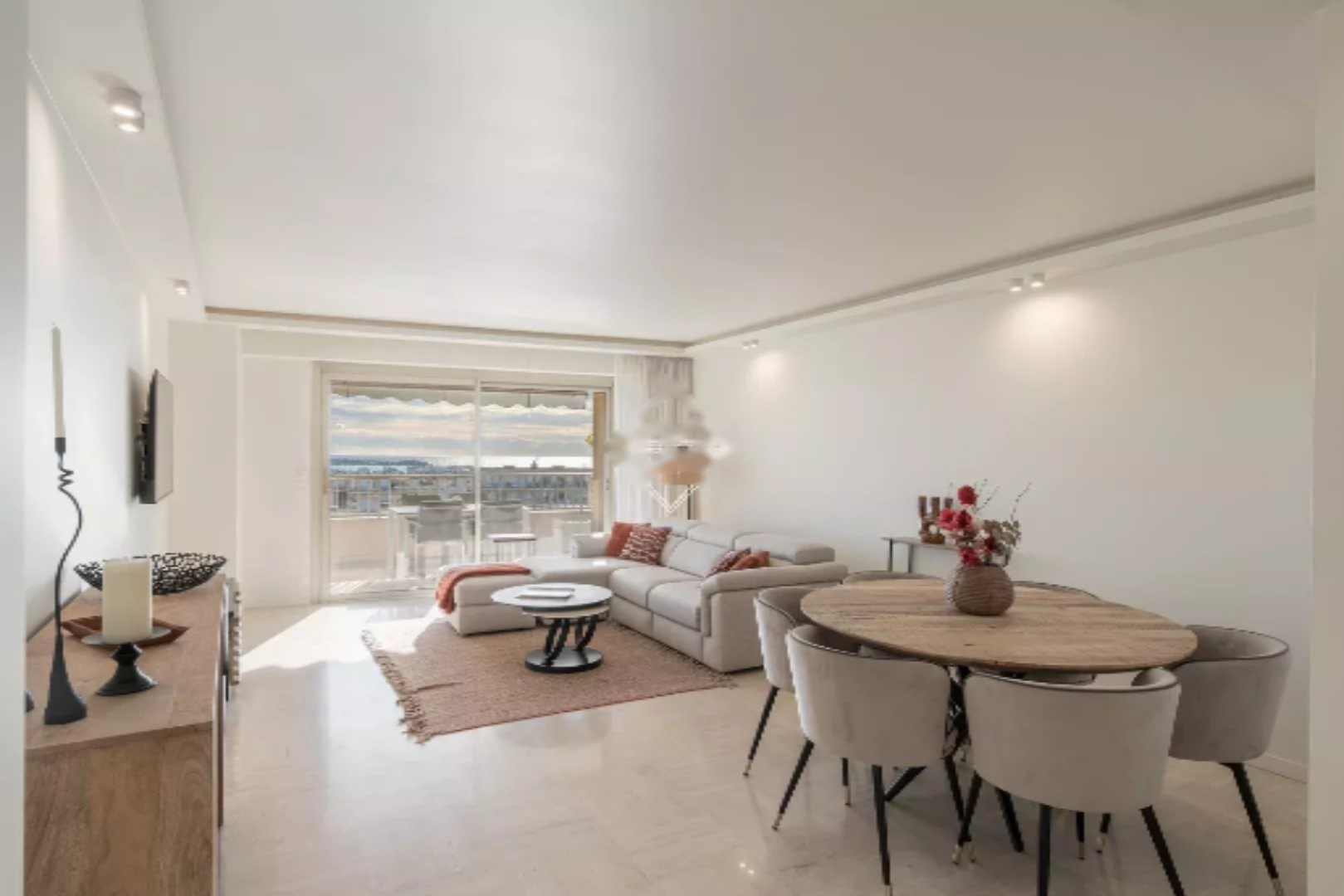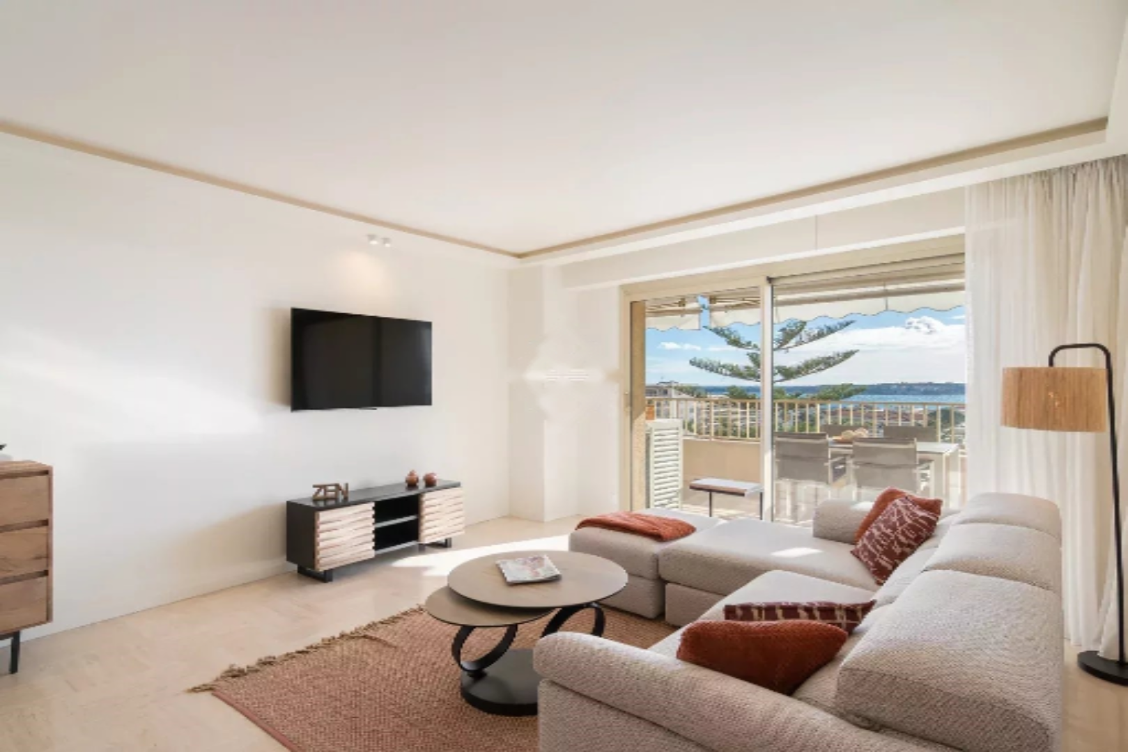 Канны, район Basse Californie, в престижной резиденции с бассейном, парком и консьержем, великолепная квартира 4 комнаты, полностью отремонтированная, площадью 108 м², расположенная всего в нескольких шагах от улицы d'Antibes. ️ Квартира включает гостиную, выходящую на красивую террасу площадью около 25 м² с панорамным видом на море, отдельную полностью оборудованную кухню, главную спальню с видом на море, ванной и гардеробной, а также две спальни с ванными комнатами, одна из которых позволяет иметь отдельный вход.