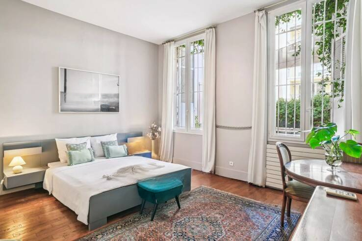 Идеально расположенная напротив пляжа Миди, в непосредственной близости от Старого порта Канн и ресторанов, эта квартира площадью 310 м² находится в старинном доме с характером. Она предлагает просторное жилое пространство площадью около 70 м², организованное в три отдельные зоны: игровая/барная зона, столовая зона и зона отдыха, открывающаяся на террасу с панорамным видом на море и массив Эстерель.