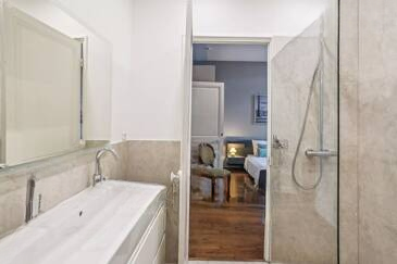 Квартира включает в себя две спальни с ванными комнатами, включая родительскую спальню с гардеробной и видом на море, а также две дополнительные спальни с душевой, кабинет и две отдельные туалетные комнаты. В подвале расположено большое помещение, в котором размещены кинозал, винный погреб, кладовая и зона с душем, предоставляющая возможность оборудовать хаммам или сауну.