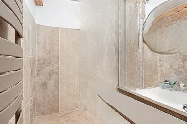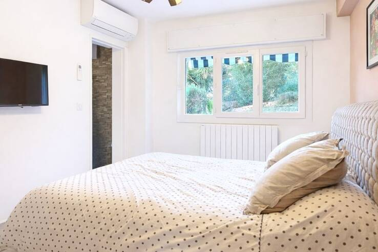 Квартира отремонтирована, оснащена кондиционером. Включает светлую гостиную с открытым видом, функциональную кухню, комфортную спальню и ванную комнату из травертина. В стоимость входят горячая и холодная вода, а также центральное отопление.