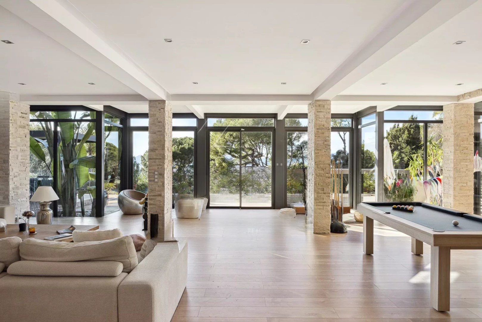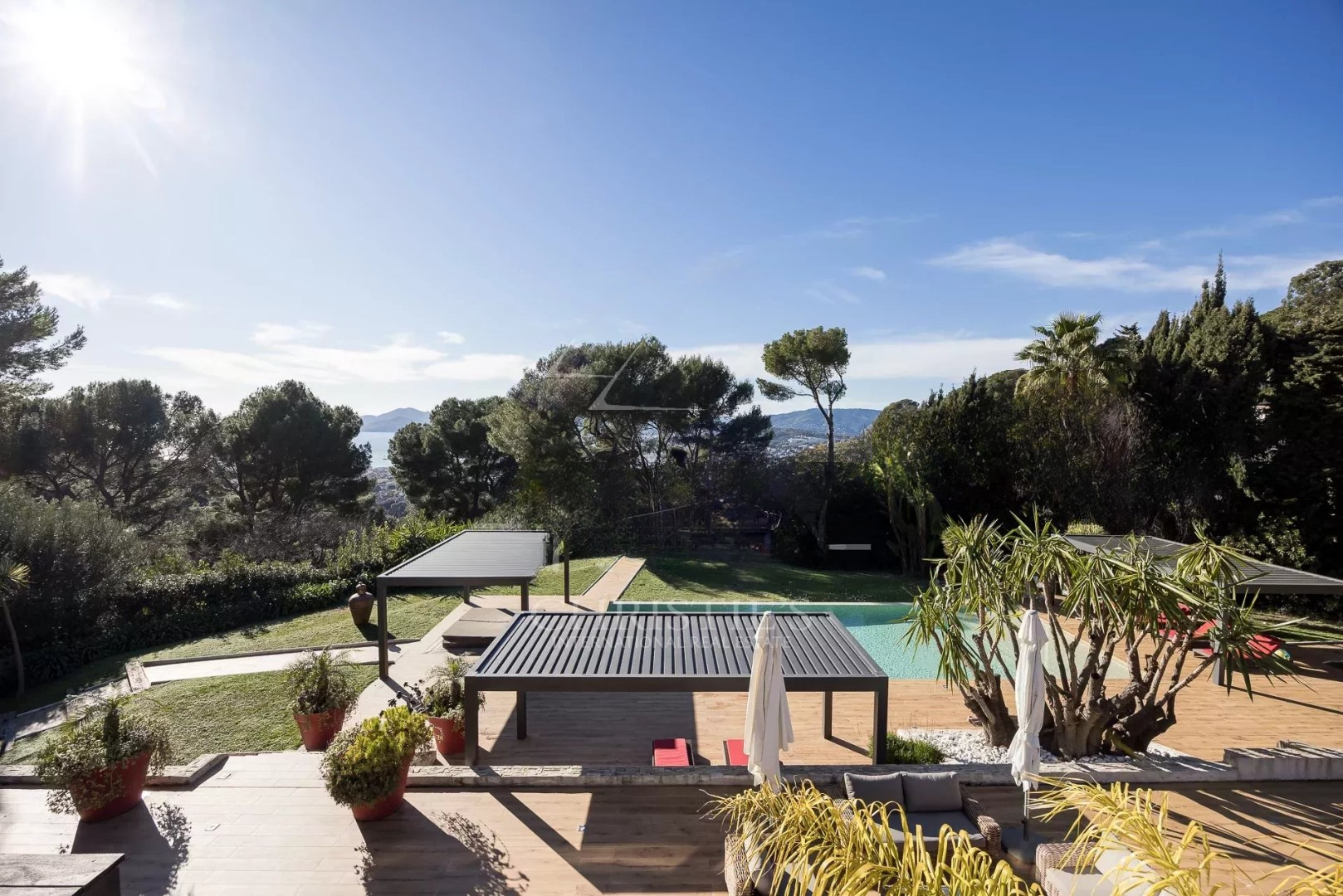 Sea view, 8 rooms, south and west exposure, unoverlooked, living room, unfurnished, 3 bathrooms, 7 bedrooms, reversible air-conditioning heating, 5 toilets, 3 shower rooms.