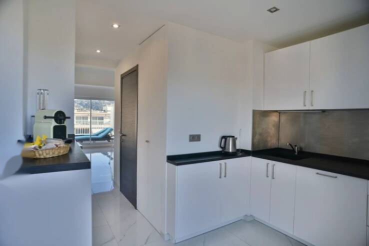 Эксклюзивная продажа! Апартамент предлагает просторную и светлую гостиную с прямым выходом на террасу, откуда открывается панорамный вид, создавая идеальное место для отдыха в любое время дня. Полностью оборудованная кухня выходит на вторую террасу, добавляя дополнительное внешнее жилое пространство.