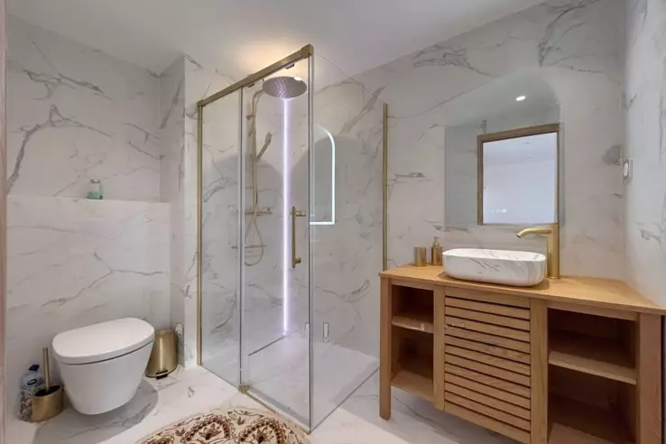 Жилье расположено в центре Golf Juan, в шаговой доступности от всех удобств и пляжа. Этот полностью отремонтированный двухкомнатный апартамент в охраняемой резиденции площадью 33 кв.м, открывает вид на просторную южную террасу площадью 11 кв.м.