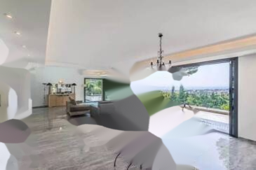 На возвышенностях Канн расположена великолепная современная вилла, недавно построенная и открывающая захватывающий вид на море от островов Лерен до Эстереля. ️ Эта недвижимость площадью в 370 кв. м была спроектирована так, чтобы позволить свету проникать внутрь и открыть вид на внешнюю территорию.