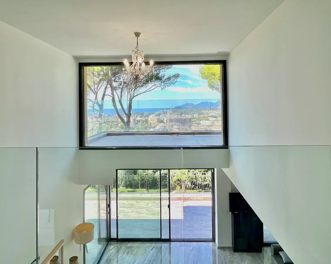 На вершинах Канн, великолепная современная недавно построенная вилла, предлагающая доминирующий вид на море от островов Лерин до Эстереля. ️
