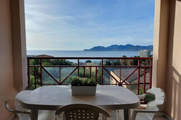 Эксклюзивно в Каннах с великолепным видом на море: В красивой резиденции для отдыха с бассейном и консьержем находится квартира типа 2. В квартире присутствует входная зона, гостиная с кухонным уголком, спальня.