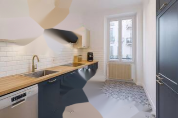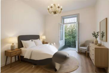 Эти апартаменты с 3 комнатами площадью 66 м² привлекают высокими потолками, красивой освещенностью и идеальной планировкой: гостиная, 2 спальни, гардеробная, отдельная кухня и балкон с видом на зеленый двор.