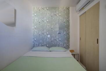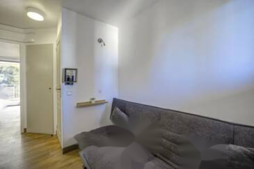 Спальная комната с встроенным шкафом. У входа дополнительное спальное место с диваном-кроватью и 3 шкафами для хранения. Ванная комната и отдельный туалет. Квартира меблирована, оборудована, кондиционирована и обновлена в 2024 году качественными материалами. ️