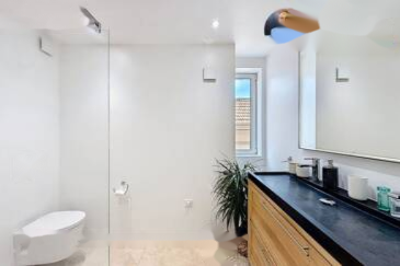 Апартамент включает в себя гостиную-кухню площадью 38,89 м², две спальни, ванную комнату с туалетом, а также вторую ванную комнату с гардеробной. Каждая комната имеет доступ к террасе или балкону.
