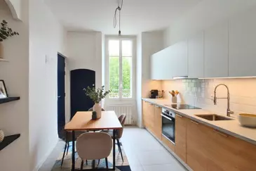 Всего в 10 минутах пешком от Дворца фестивалей, предлагаем вашему вниманию просторную двухкомнатную квартиру площадью 46 м², расположенную на первом этаже небольшого дома из четырех квартир, недавно отреставрированного.